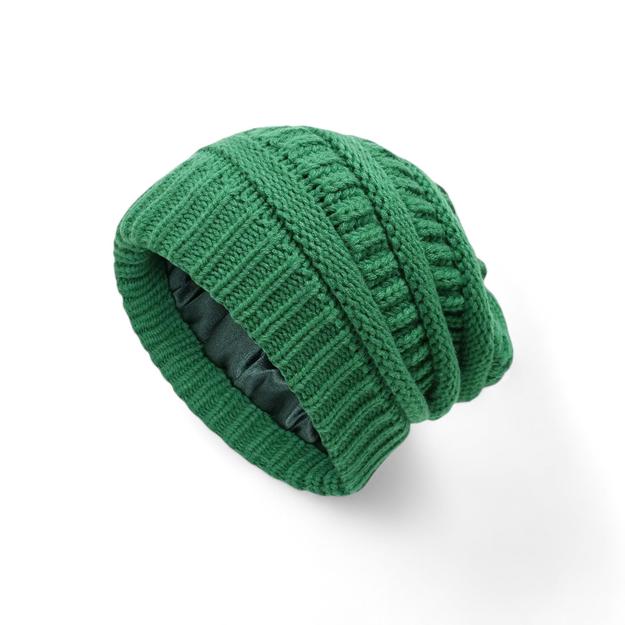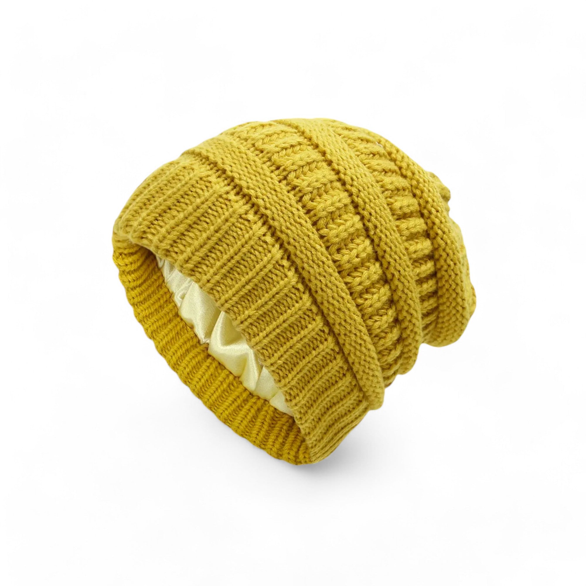 Onze beanies met satijnen binnenvoering combineren stijl en haarverzorging. De zachte satijnen voering vermindert wrijving, voorkomt pluis en haarbreuk, en behoudt de vochtbalans van je haar. Ideaal voor koud weer, houden deze beanies je hoofd warm terwijl ze je krullen beschermen. Deze trendy en functionele beanies zijn perfect voor dagelijks gebruik en zorgen ervoor dat je krullen er altijd gezond en glanzend uitzien.
